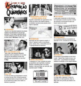 A Reinvenção dos Quadrinhos é uma compilação de memórias de Álvaro de Moya que remontam àquela exposição e ao ambiente cultural da capital paulista, com suas livrarias, cinemas e pontos de encontro. Há também o depoimento de personalidades que participaram da exposição, auxiliando na sua realização ou como simples visitantes, dando as suas impressões. Tudo com reprodução de farta memorabilia: fotos, cartas, cartazes, documentos, as artes dos mestres que foram expostas naquela exposição e toda a repercussão na mídia na forma de recortes de revistas e jornais. Em resumo, é um livro-documento de um marco da Arte e das Histórias em Quadrinhos.