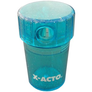 Apontador de lápis com depósito X Acto. Utilizado largamente para lápis de cor, lápis graduado e lápis escolar.