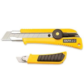 Os estiletes OLFA L-2 foram desenvolvidos para cortar materiais duros como: chapas de madeira, carpetes e cartões. Estes cortadores utilizam lâminas “LB” que são fabricadas através de um processo de produção preciso com a finalidade de se obter a melhor relação entre a capacidade de corte inicial e a vida útil da lâmina. Aplicações mais comuns: aplicações industriais, projetos de bricolagem, utilização na construção civil, etc.