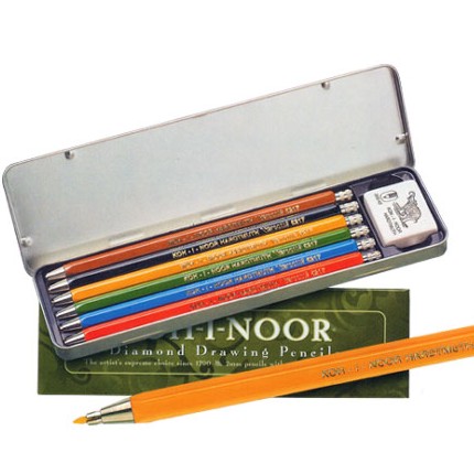 Lindo estojo de lapiseira Koh-I-Noor, composto por 06 lapiseiras 2.0mm e 01 borracha Koh-I-Noor. Edição especial modelo 5217.