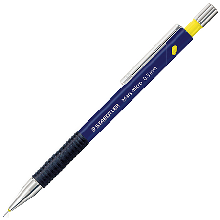 Lapiseira Staedtler utilizada para desenho e escrita. Esta lapiseira possui punho de borracha anti-deslizante, pode ser utilizada com segurança no bolso devido a ponta retrátil de metal. A linha de lapiseira Staedtler possui mina amortecida para alto nível de resistência a quebra.