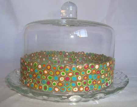 Queijeira decorada com técnica feita com extrusora, utilizando as mais variadas cores da massinha fimo.
